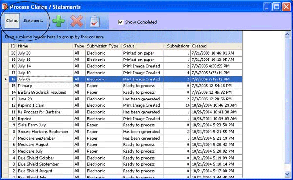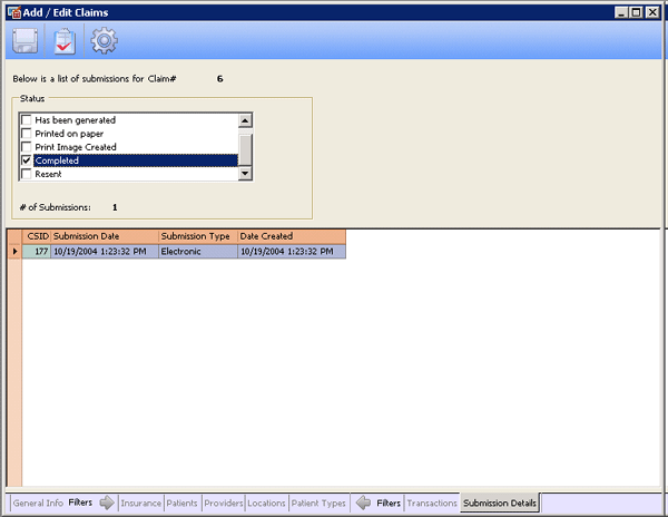 MedOffice tracks your claims filing with this screen --
