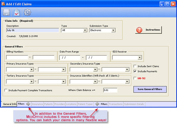filtering, MedOffice automatically finds all outstanding claims that match your